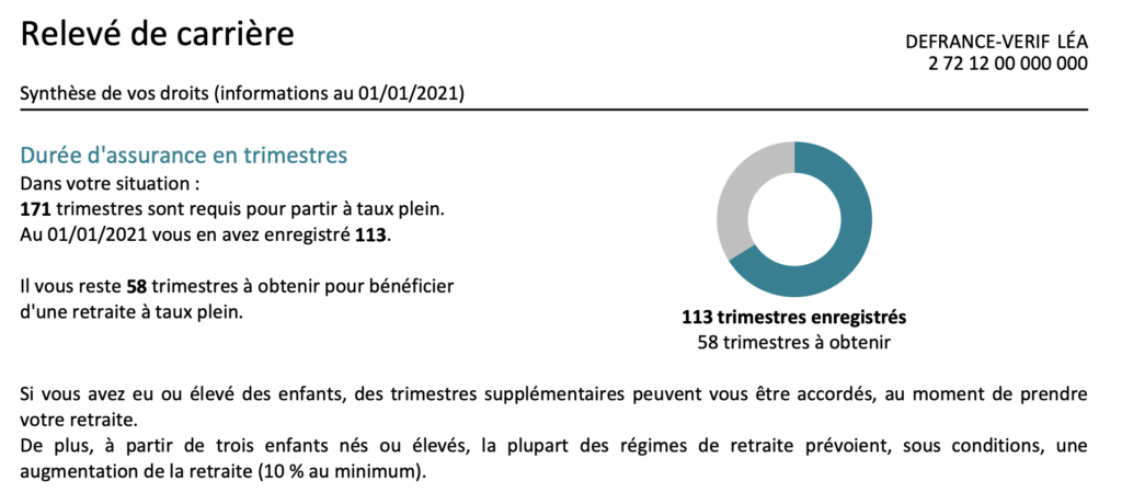 Cette démarche, à engager jusqu’à 5 ans avant votre départ, vous offre une visibilité claire sur vos droits et vous permet de préparer votre fin de carrière (retraite anticipée, rachat de trimestres, carrière longue…) Pour en savoir plus, nous vous invitons à lire notre article dédié.